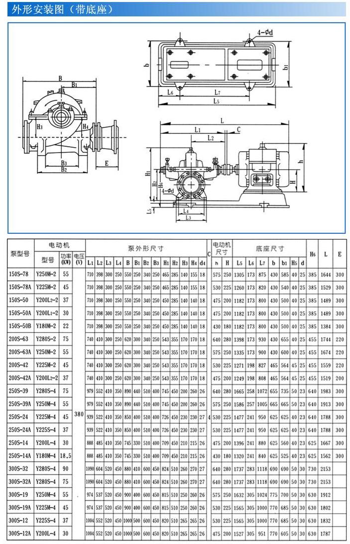 【S、SH型中开式单级双吸离心泵】安装尺寸图: