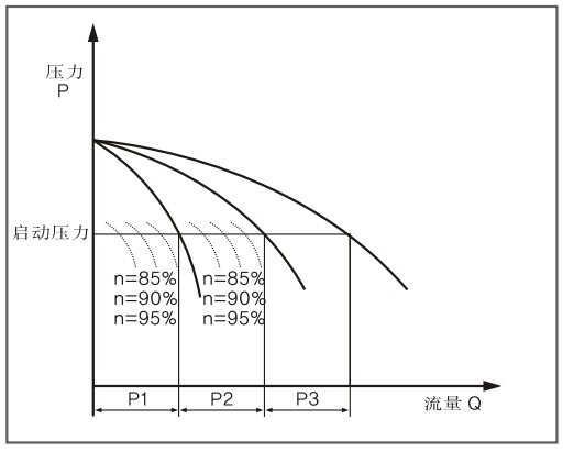 水泵刚运转时,先给压力罐补满水,随着压力增大达到设定压力后,水泵停止。