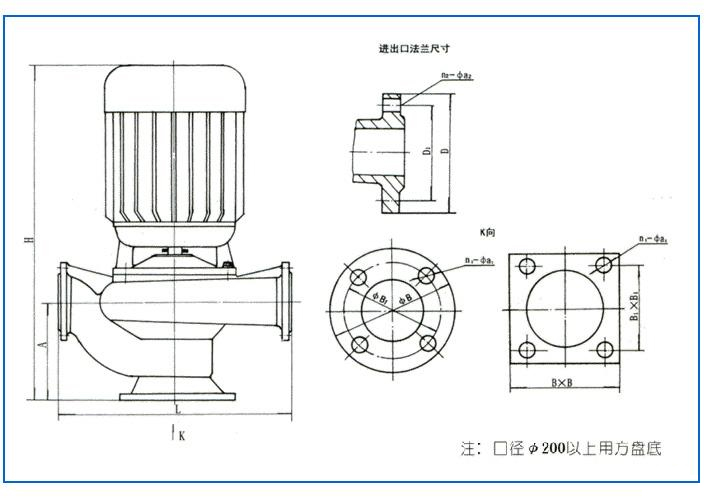 5、泵为立式结构,进出口中心线在同一水平线上,且进出口法兰规格相同,安装拆卸十分方便。